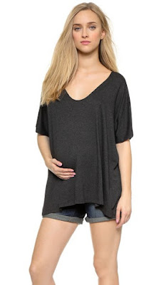 I know this seems weird but I loved a fitted knit skirt while pregnant. It was so comfortable and it looked so cute with loose blouses and tees. I owned this Alexander Wang skirt in green and wore it all the time. Below is a picture of it and another example of a fitted knit skirt.