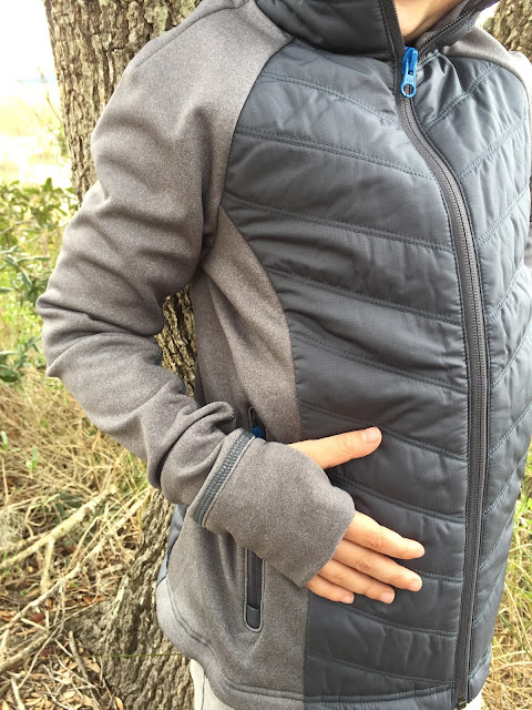 If you are looking for outerwear check out the Zelfusion line for the kids. It is created by Zella. Sterling spied the jacket and really wanted it because it had the thumb holes like my workout jackets.