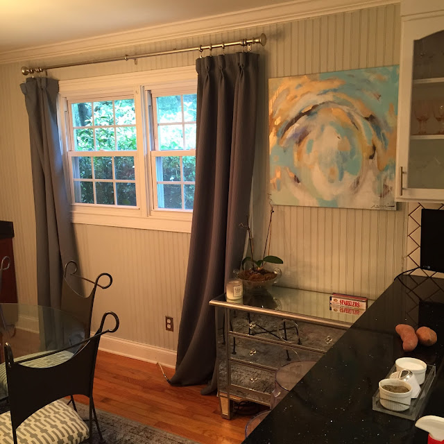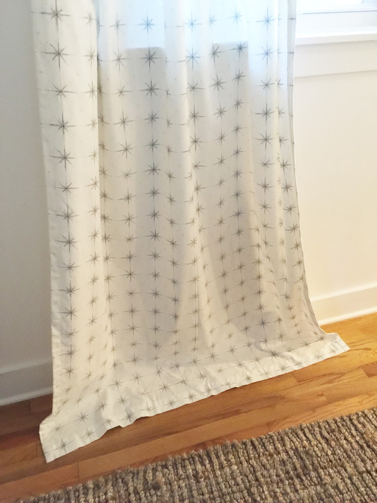That room looks amazing! We just redid our dining room and I almost bought that ocean painting… Question for you. Are the stars on the curtains gold or silver? I'm having a hell of a time trying to find white and gold curtains for our office. Thanks!!