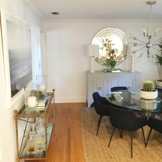 2) rip out the bar and sink in the corner. It really served no purpose since our dining room is connected to our kitchen and we have a sink and storage in there. It bothered me because I could never center a piece of furniture on that wall.