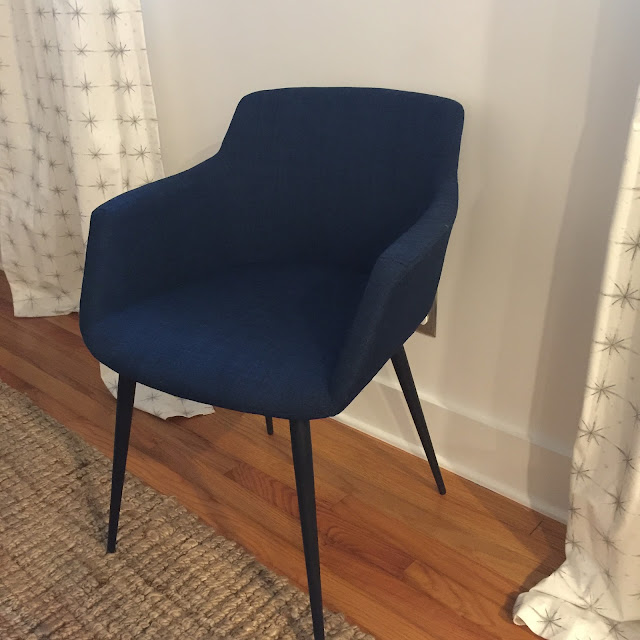 I loved the modern and sleek look the most about these chairs. The room is white and everything else is light so I loved the idea of navy- plus the navy hides stains easier too.