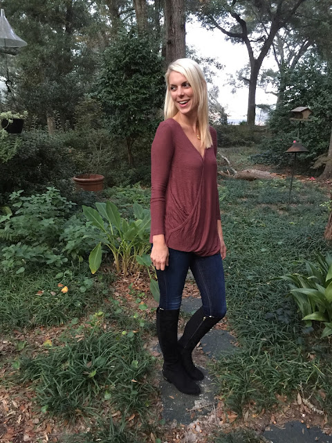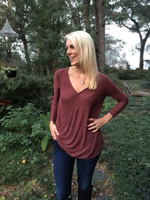 This top is a recent purchase. It is the perfect casual top and so incredibly soft. I love the wrap front detail and draping.
