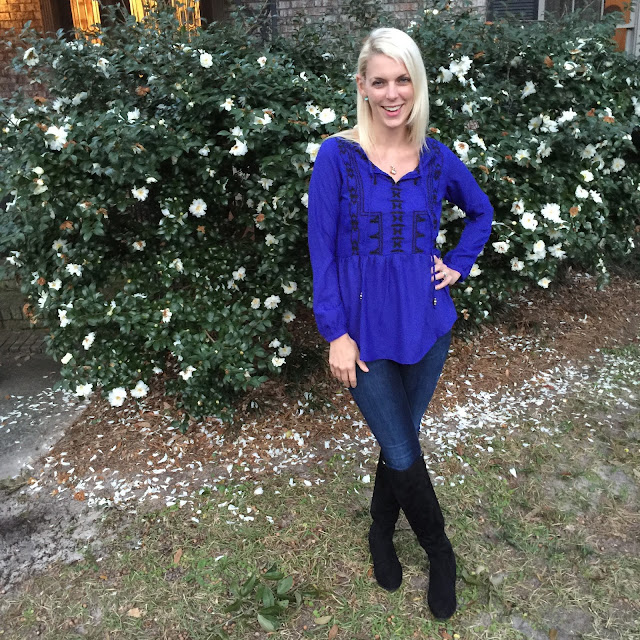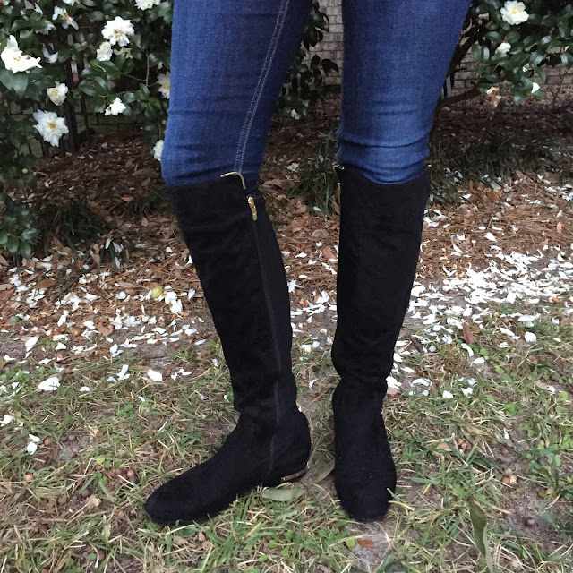 I have searched for awhile for the perfect pair of over the knee boots, so when I found these and for under $100 I was ecstatic. They come in 5 different colors. I debated a long time between the black and gray but went with the black and LOVE them. They are comfortable and have a bit of stretch to them so they are not too tight. They run TTS.