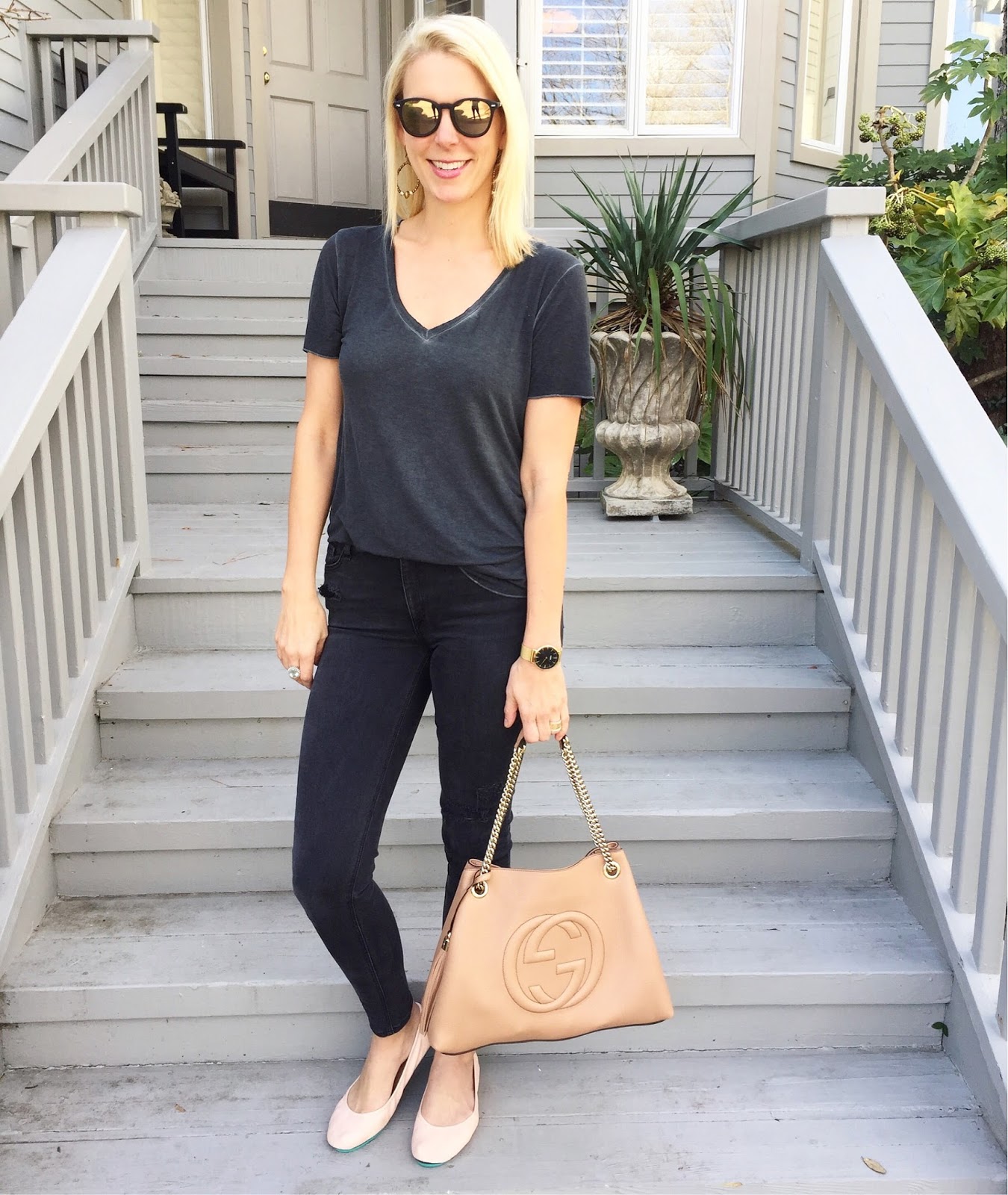 Tee shirt | Jeans | Sunglasses | Watch | Purse | Shoes (same look for less) | Earrings