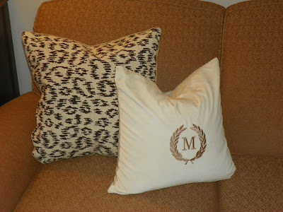 Cassie hit the nail on the head! That's exactly what I was going to suggest. I love the pink/leopard but you could "sophisticate" it up a bit with one monogrammed pillow. Ohh yeah. That will be cute! Let us know when you try taht combo!