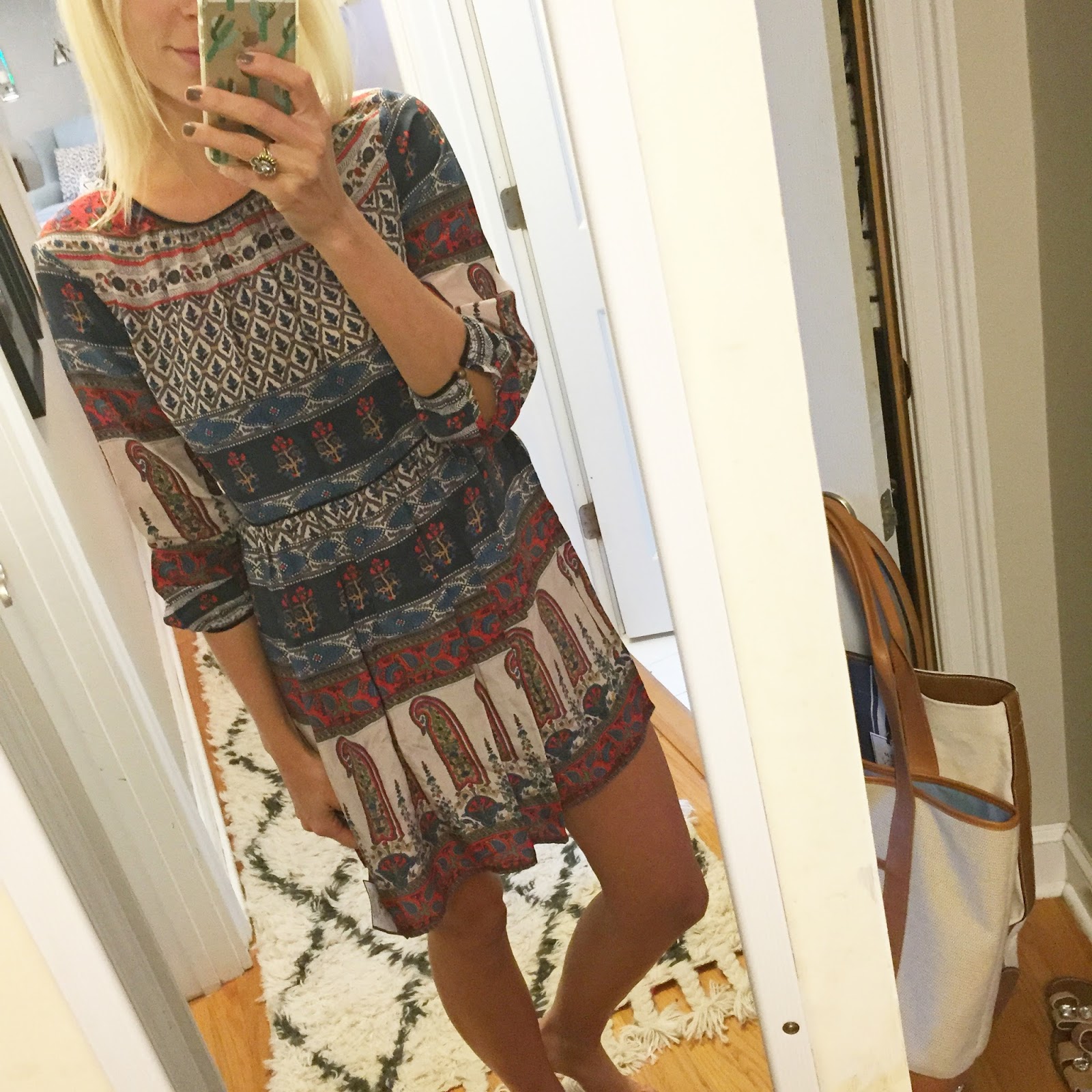This dress is so incredibly comfortable. I love the boho feel and pretty pink color. It would be perfect if you are pregnant. It is super loose so size down!