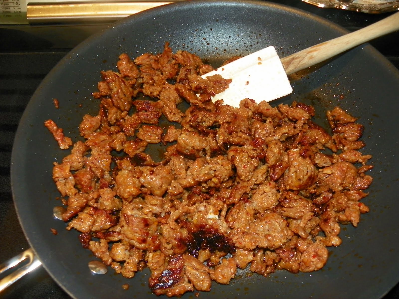 2.Preheat oven to 350 degrees. Cook sausage in a skillet over high heat, breaking up pieces, until no longer pink, about 4 minutes.