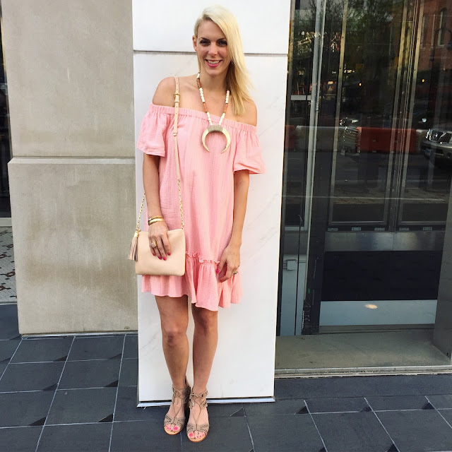 I wore this off shoulder Rebecca Taylor dress for meetings that day.