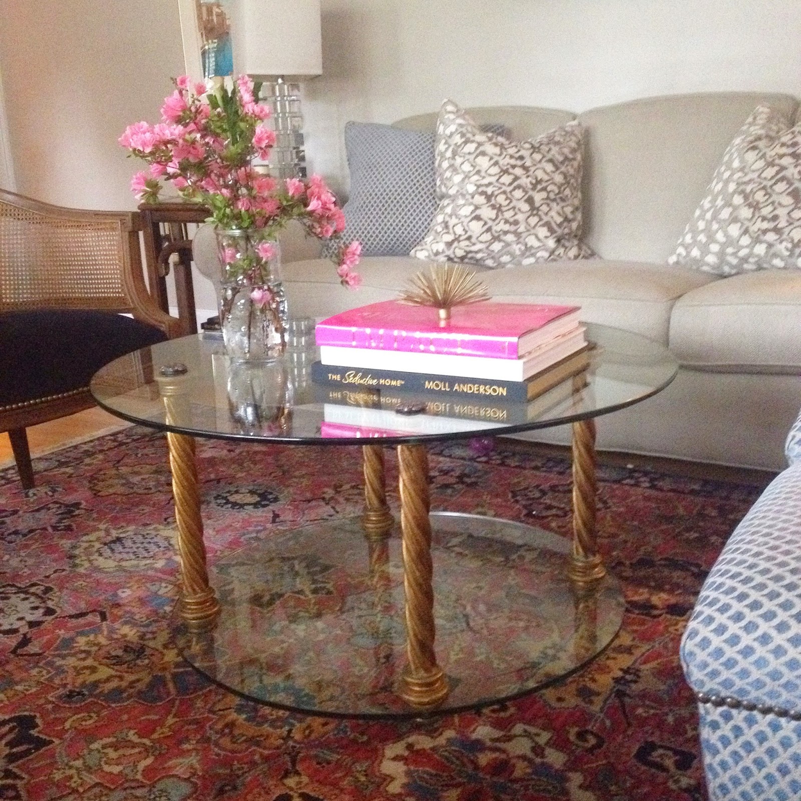 Saturday was spent unpacking. While in Charlotte I bought this cool vintage coffee table at Slate Interiors. I just love her in our space. I had been wanting a round two tier table so it was love at first site:) Our azaleas are in full bloom so cut a few for our den.