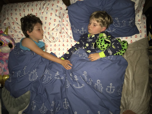 Sterling had a friend spent the night that night and I snapped the cutest picture of them in bed. It almost looked like they were holding hands while they slept.