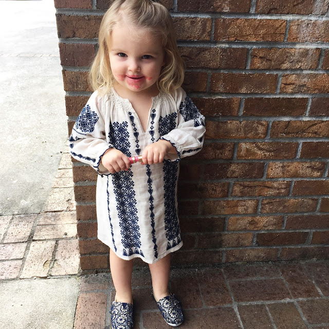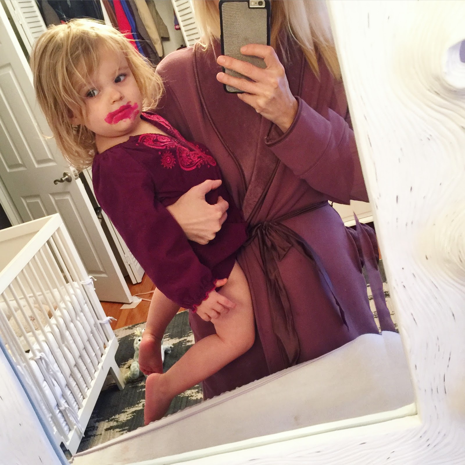 Frances has been into stealing my lipstick these days. I clearly need to start hiding it. I do appreciate the fact that she color coordinates it with her outfits.