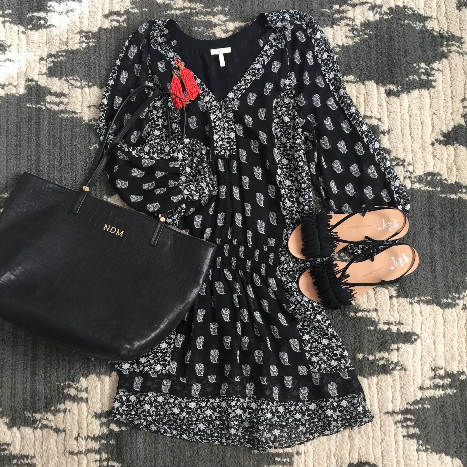 Joie Dress also here | T Marie Earrings | BR Sandals (use code BRSPRING for 40% off) | Gigi Tote