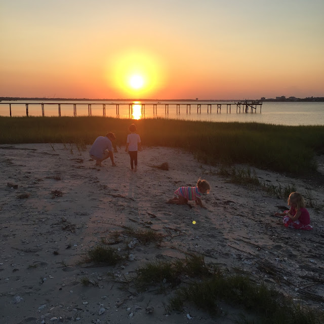 Friday we took the kid’s shark teeth hunting after dinner. Sterling is so good at finding them.