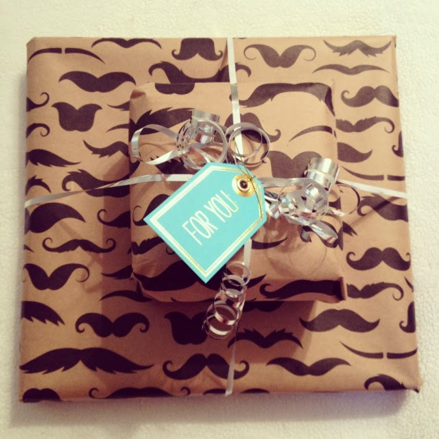 Later that afternoon we had a Birthday Party for one of Sterling’s friends. I found the most adorable mustache paper at TJMaxx, I was pretty happy with my professional looking wrap job:)