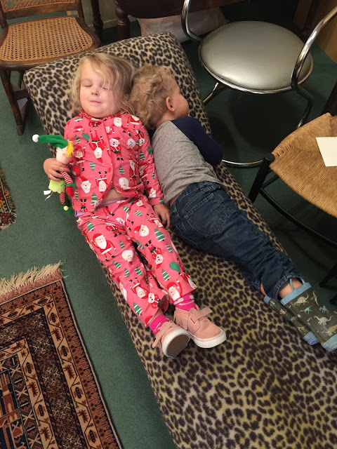 My mom and I did a little Christmas shopping and stopped in Antiques of Windemere. Frances was really trying to convince me she needed this leopard chaise. It was pj day at school that day hence her Christmas jammies.