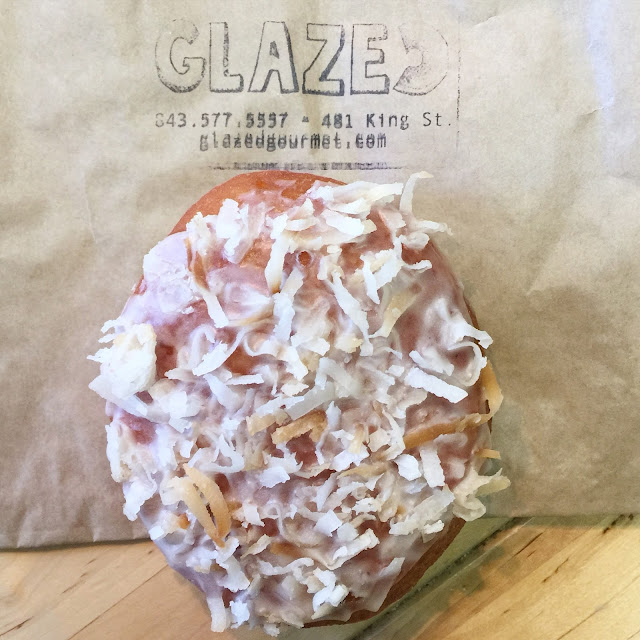 Saturday morning the kids and I headed to the Farmers Market. This is one of our favorite Saturday traditions. We always stop in Glazed along the way for doughnuts. This week they had a special called the pina colada doughnut and it was seriously one of the tastiest doughnuts. It was filled with a pineapple filling and had toasted coconuts on top.