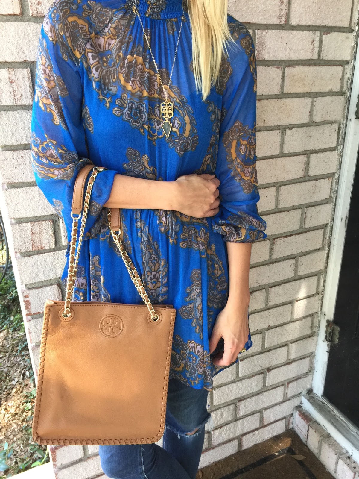 I wore this velvet tee during the day with flats and fun earrings and then dressed it up that night with a statement necklace and heels.