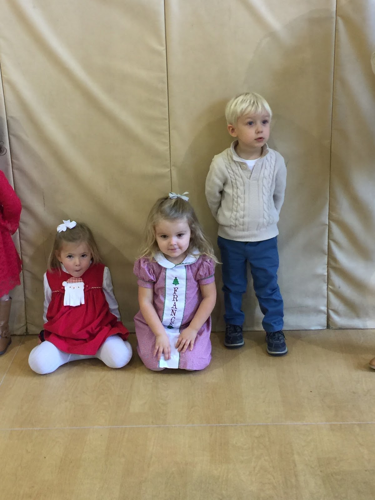 Friday morning we headed to Frances Moon’s Christmas program. The 2 year old class did a re enactment of the nativity. I about cried when I saw her walk out as Mary. It was the sweetest thing ever. Now she keeps telling me Jesus is her baby:)