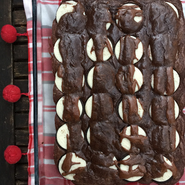 Then we baked Oreo brownies. I make these every year around Christmas and they are so good! I usually make two batches one with double stuffed Oreos and the other with the red Oreos.