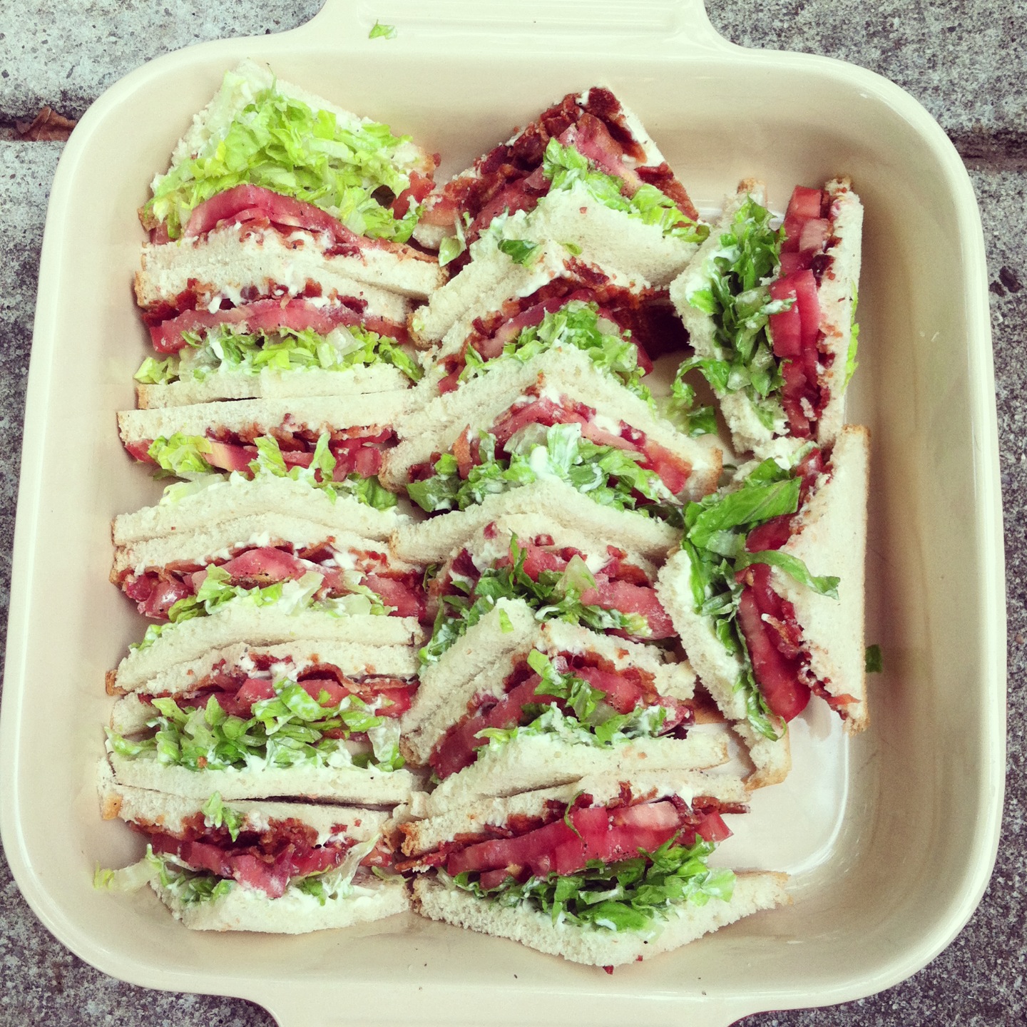 What a perfect way to enjoy BLTs!! I never thought of making them cute and all cut like that. I don't think the veins go away unless you get surgery? Small price to pay for healthy babies, is what I try to say. You're adorable!