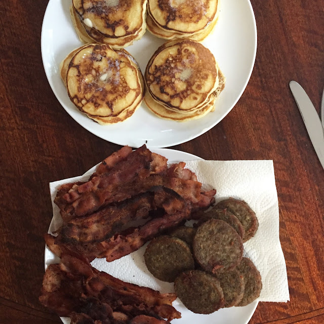 One of my favorite parts of going home is the breakfasts my Dad always cooks us. His pancakes are the best ever and he never skimps on bacon:) It is such a treat to have someone else cook for you!