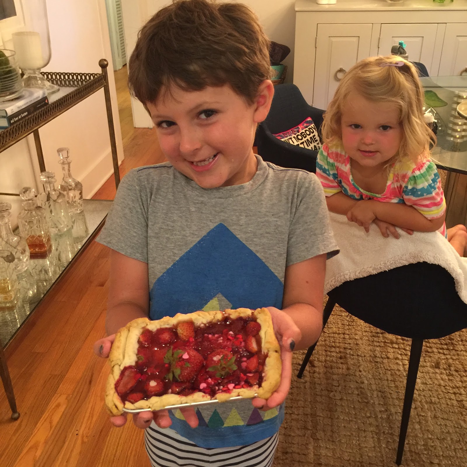 While I was making my tomato pie, Sterling wanted to make his own pie with some leftover dough. He actually did a pretty good job. He used strawberries, brown sugar and sprinkles. I love that he likes to cook like I do. He was very proud of his pie.