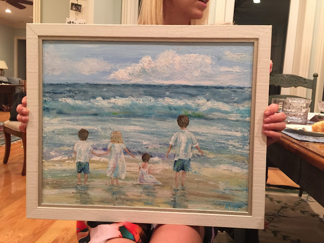 Great post! I love your dress choice for the party, great pattern and gorgeous colors. The painting that you commissioned is just gorgeous what a special gift.