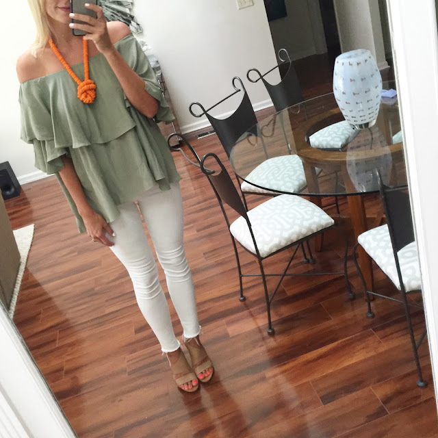 Saturday night we had a couple’s date night with some of our good friends. I have said it before but these white jeans are simply the best. They are not see through and offer the perfect amount of stretch.