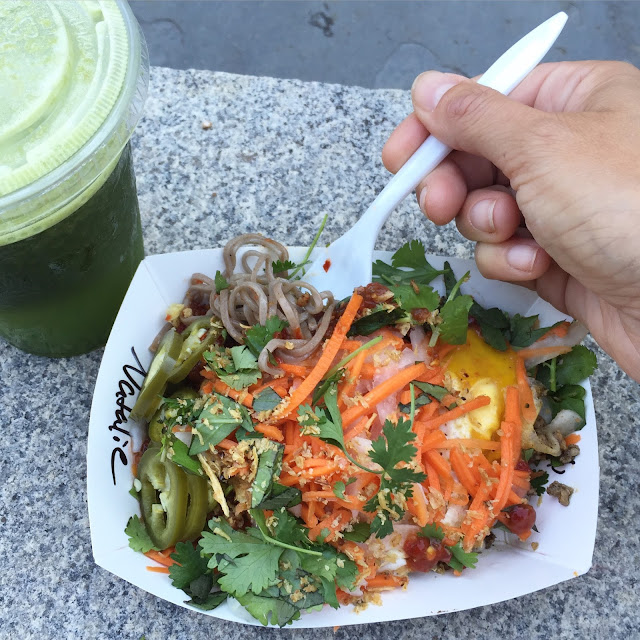 I had the best breakfast | Green Garden Juice + Soba noodles with pork and a fried egg.