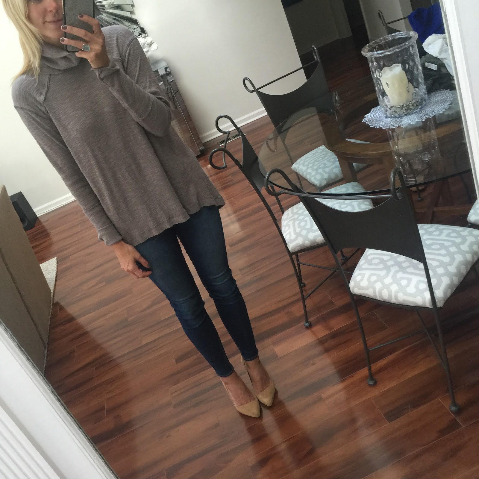 I love the Maria high wise jeans. They suck everything in. This gray color is a new favorite for Fall.