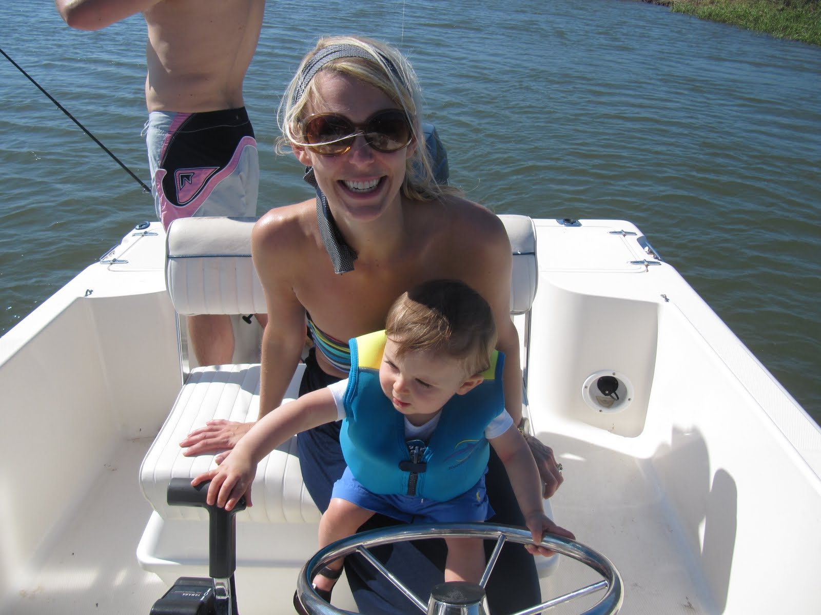 Matt grew sailing boats, and while we own a motorboat and not a sailboat, I can already tell it is in Sterling’s blood. He is definitely a boat lover like his daddy. He loved steering the boat and helping daddy drive. I couldn’t resist sharing a few pictures from our weekend!