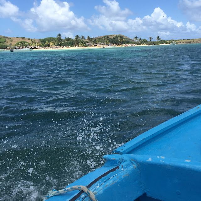 Our other favorite spot was Pinel Island. We went there last year on a snorkeling trip and knew we wanted to go back. You can only get there by boat or kayak. This year we took a taxi ride and then a short 5 minute boat ride over. The view from our boat ride, that is Pinel in the background.