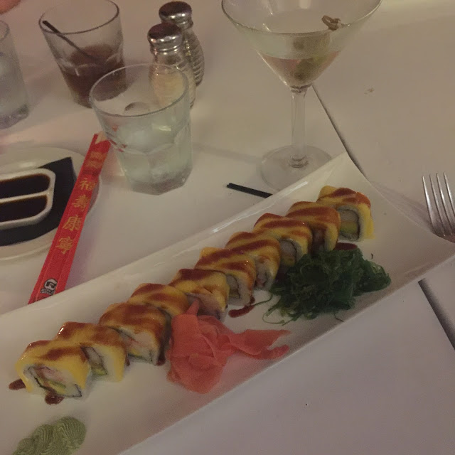 I had a salad and a sushi roll that was mango, crab and avocado- and both were awesome.