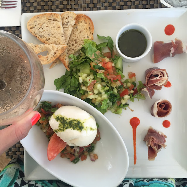 My lunch was my favorite all week- a burrata and serrano ham salad and beautifully plated I might add.