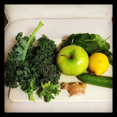 1) Kale, Spinach, Cucumber, Green Apple, Lemon, Ginger