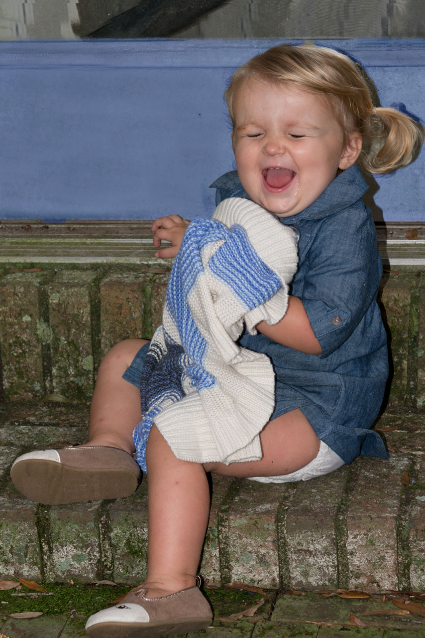 I had a sweater I wanted Frances to wear with her Chambray Dress but she was not having it. At all.