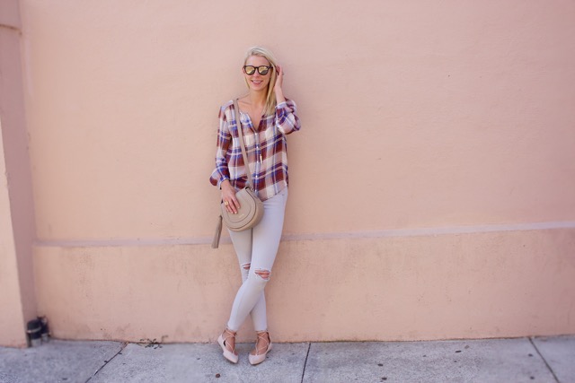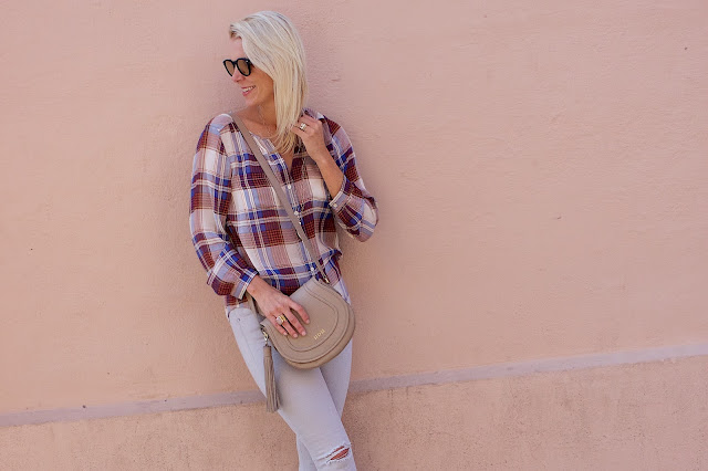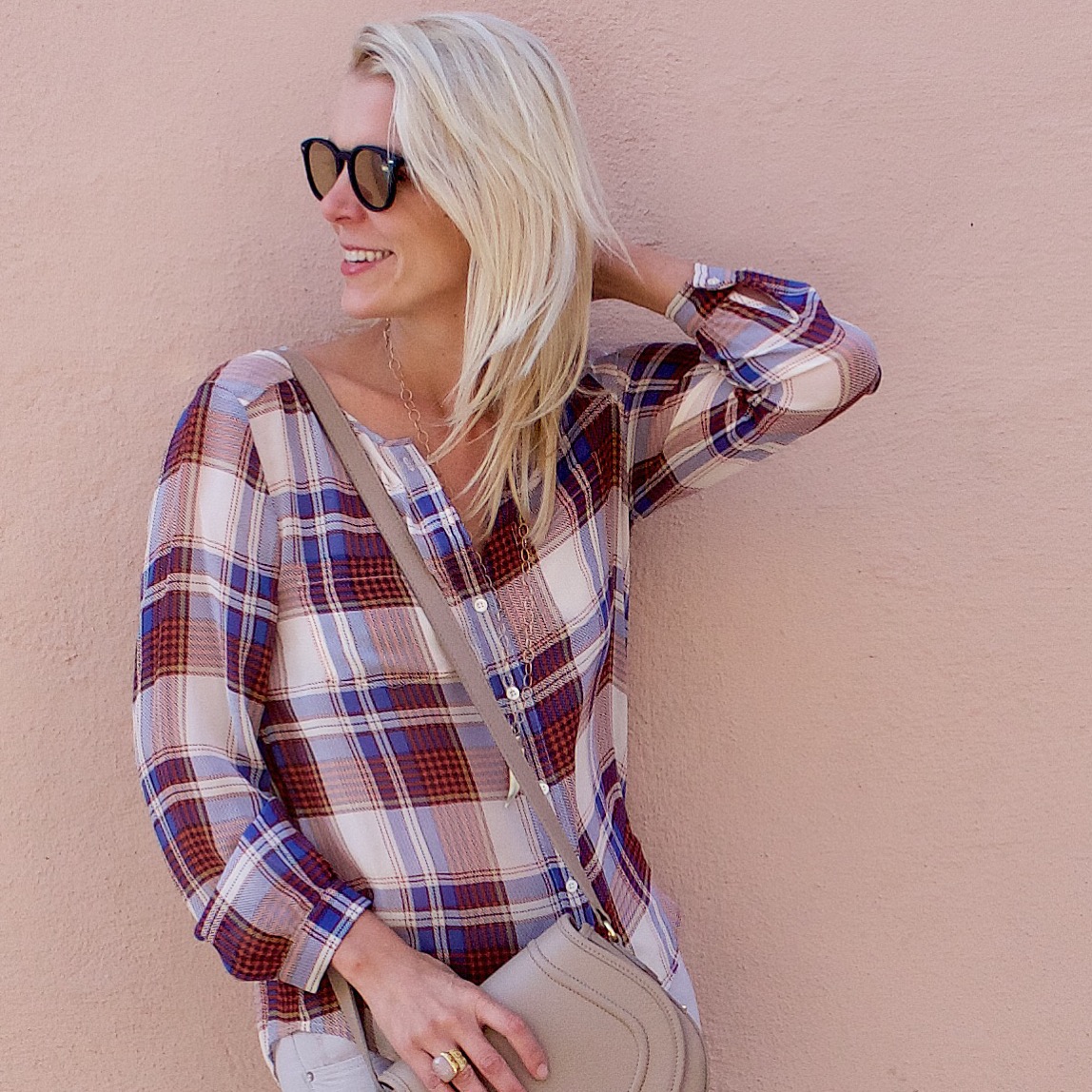 I am not typically a big plaid person but this Fall I have seen so many plaid things I am loving. Case and point this blouse. I immediately fell in love with the colors. I also liked it because it was silk and not flannel like most plaid shirts. Fit wise it runs TTS, I am wearing a small.