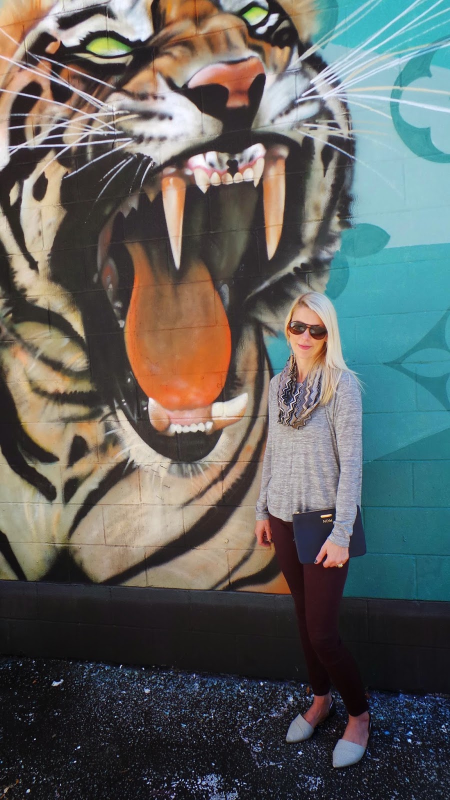 I decided to put together three different looks for colored denim because sometimes it is harder to style colored denim than your regular old blue jeans. I have to give Matt props for the back drop of these pictures. He found this amazing Graffiti Alley on James Island and thought it would be a cool backdrop for pictures and I think he was right!