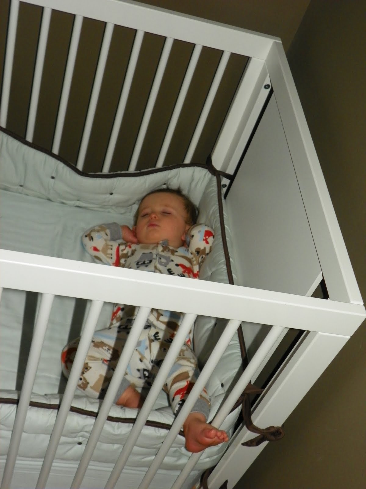 AHHH…adorable. But is it weird that I sleep almost the exact same way, minus the crib:)