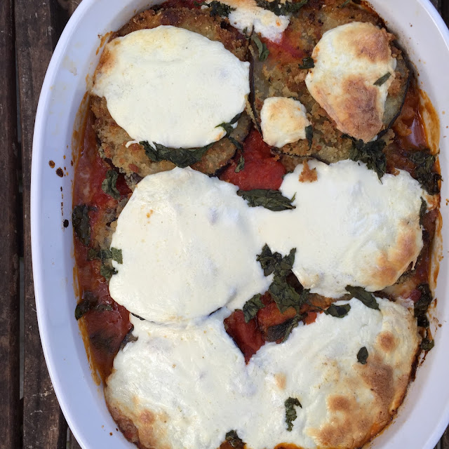 I love love love eggplant parm this looks so good Natalie! Did Matt (and you) go totally Meat Free?! I had no idea! I have posts I missed during the last few weeks!