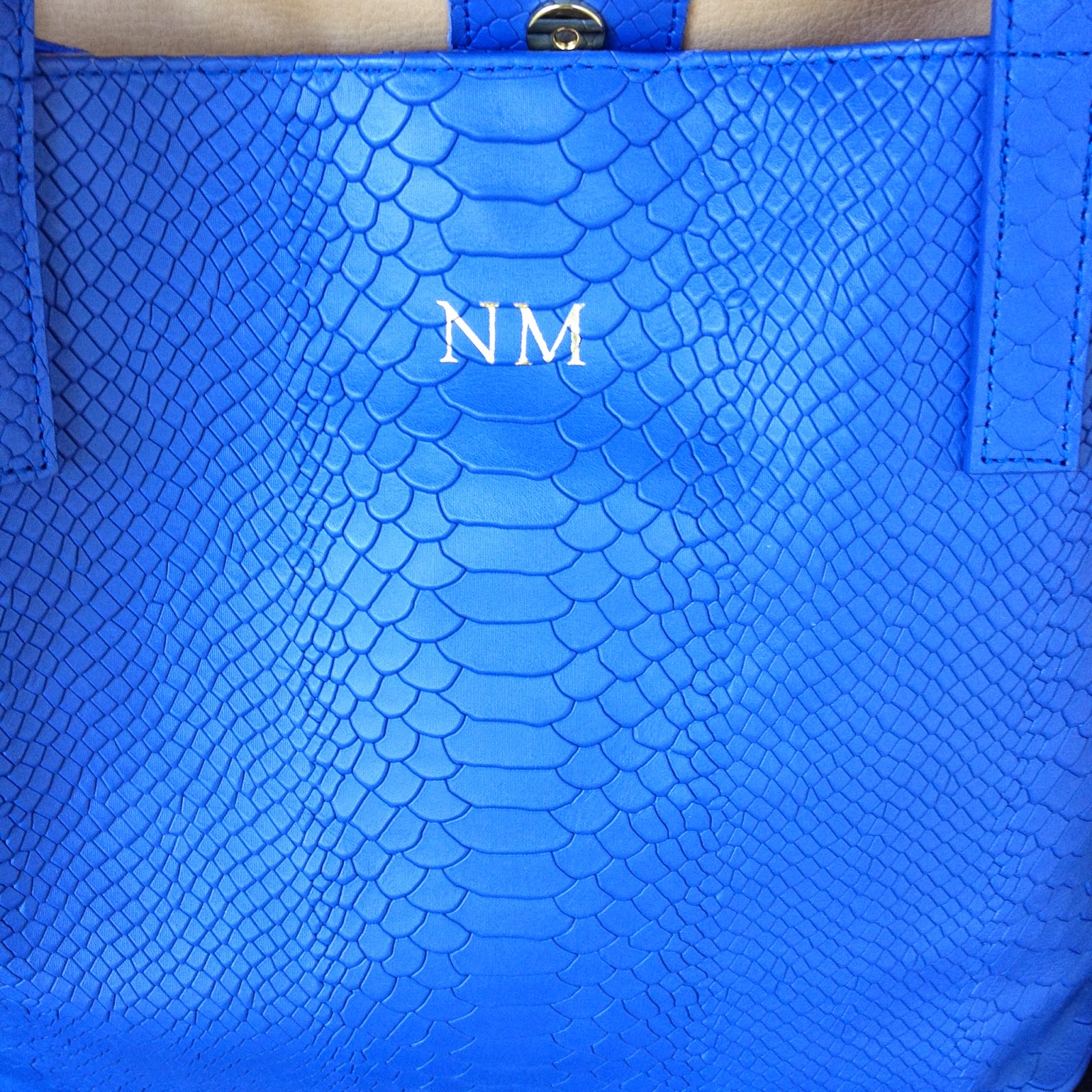 A close up of the snakeskin leather and embossed initials. This time I decided to just do two initials.
