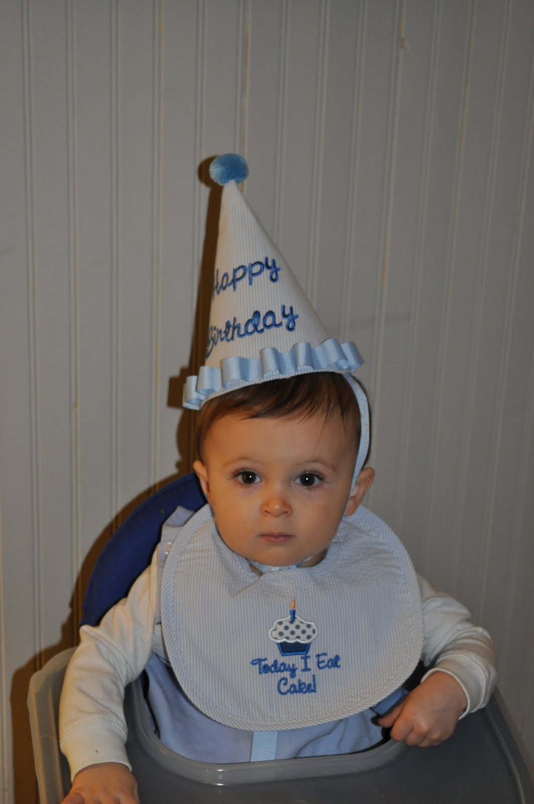 Sterling is too cute in his Birthday hat and bib. Congrats on a great party 🙂