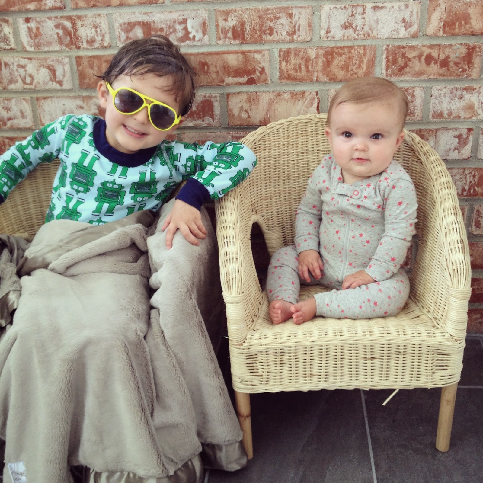 Everything looks fabulous on you, and I love the sunglasses on your two little ones! Also, those napkins are fabulous!