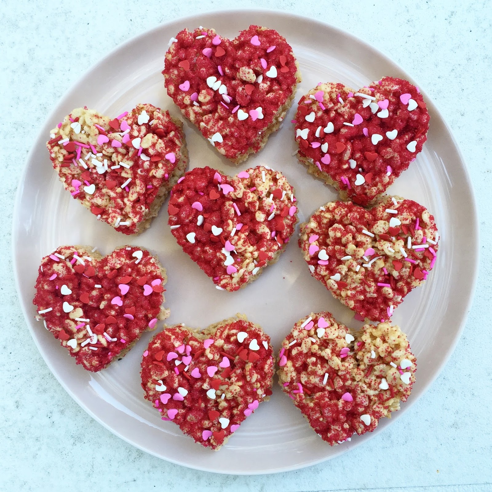 We got in the Valentine’s spirit and made the cutest Heart shaped Rice Krispie Treats. Just add sprinkles and cut into heart shapes:) I found heart shaped cookie cutters at Crate and Barrel but sometimes TJMaxx gets them in.
