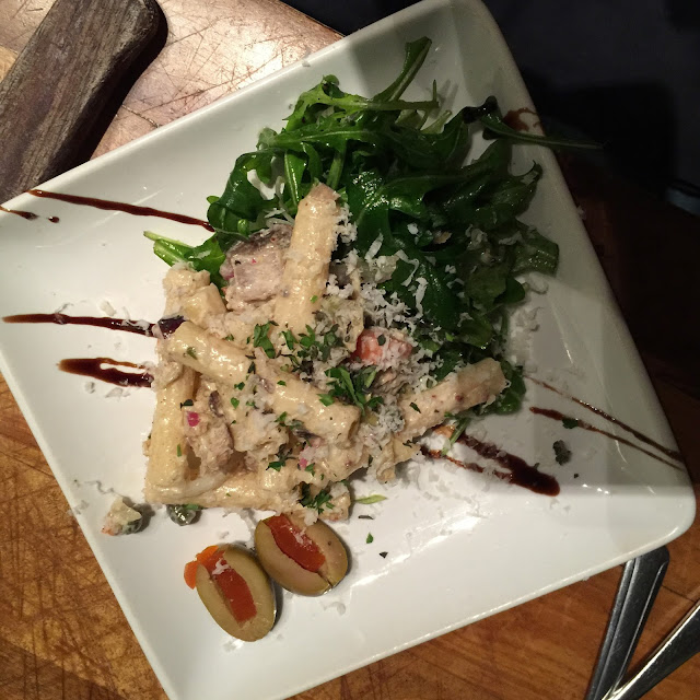 Pictured below is the pasta, pork sandwich, and chicken cordon bleu.