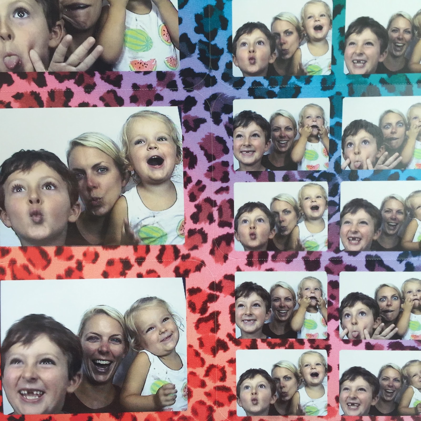 I like that sweater dress, it is not too full of stripes…what about a blazer if you feel like it is too much? Your son is adorable and the one shoulder dress looks fantastic on you!