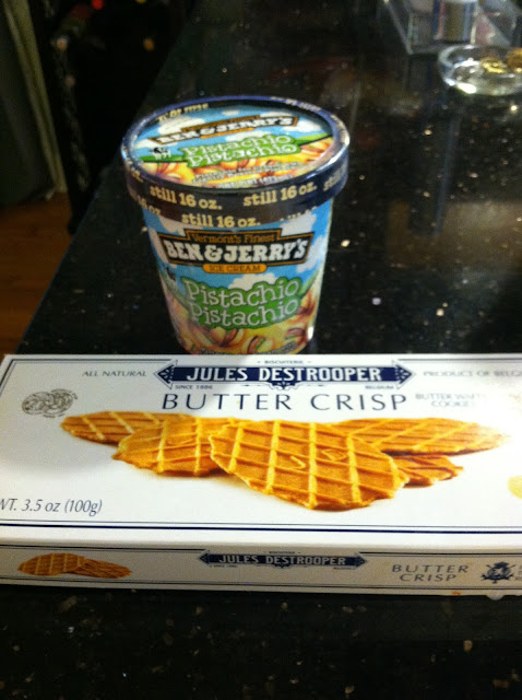 If you are looking for an easy delicious entertaining dessert then look no further. Lately this has been my go-to dessert. Best part it is only two ingredients: Pistachio Ice Cream and Butter Crisps.