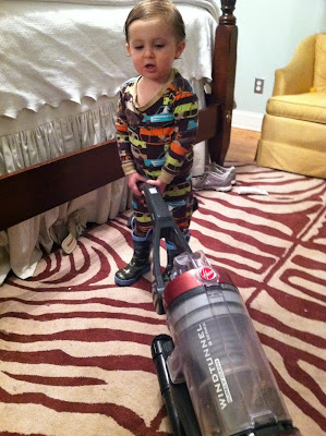 Girl- James will not put the vacuum away! We even bought him a little toy one but he insists on pulling out the big ole Dyson and pushing it around the house! Happy new year to you!