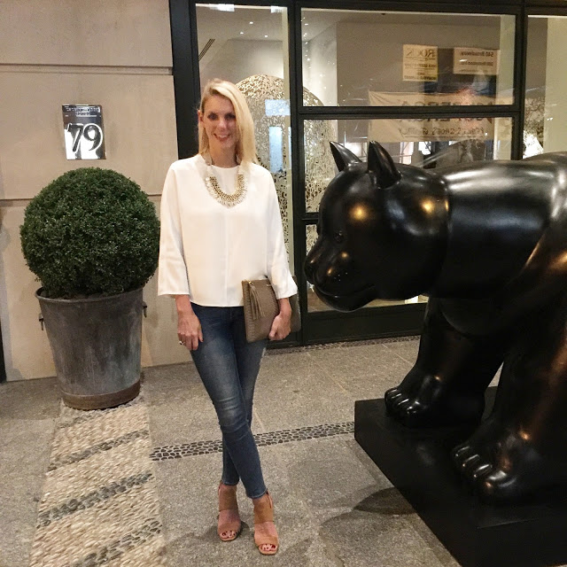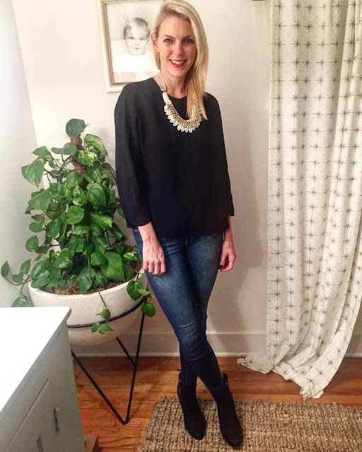 One of my favorite Vince blouses is now 40% off. This is the black one I wore last weekend. I also own the white. It runs slightly on the large side I am wearing a size 2. They are so easy to dress up or down. The back is my favorite part.