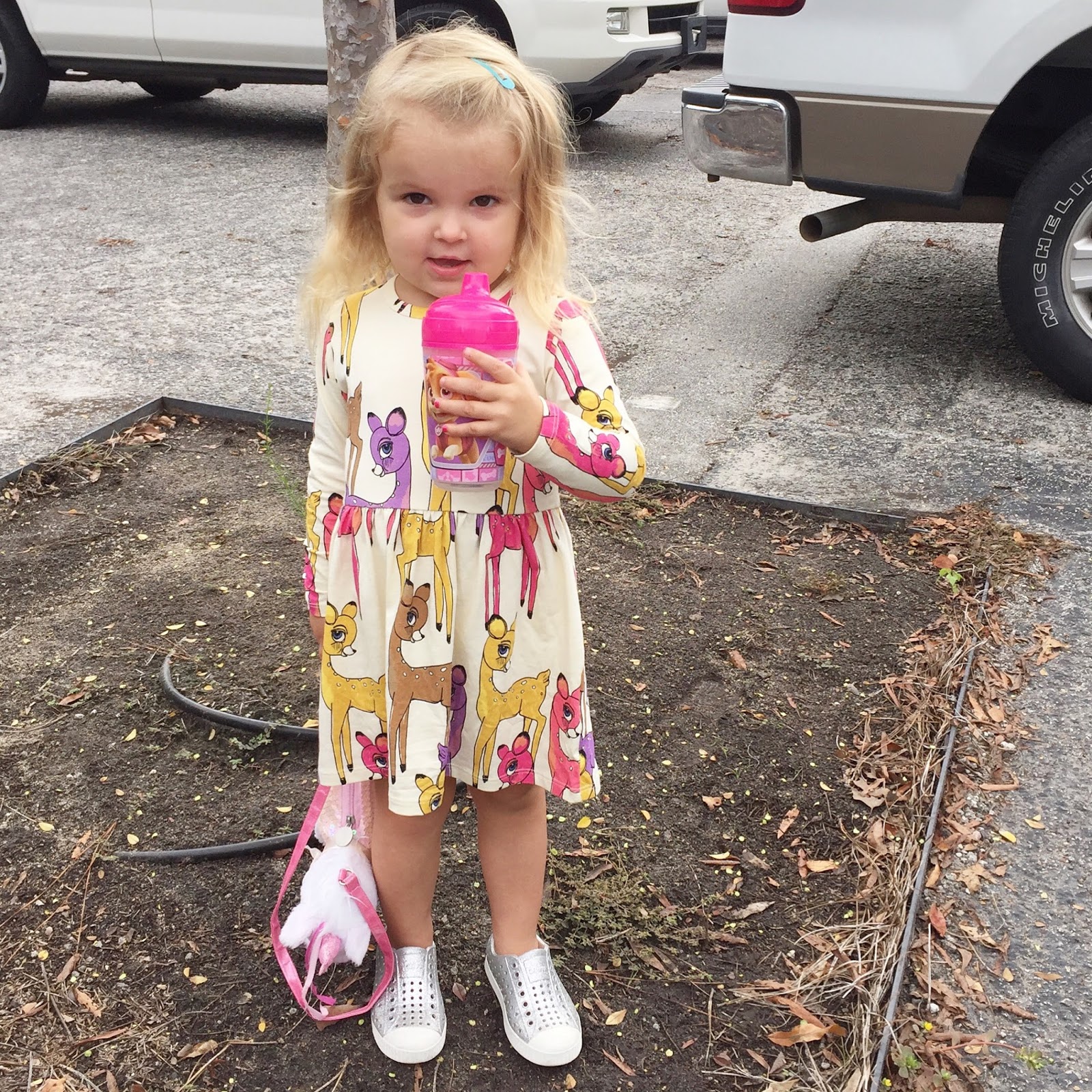 How adorable is this deer dress?? Frances picked it out at the Progeny Pop-Up Shoppe last weekend. I love her sparkly silver natives so much I am ordering her the gold next!